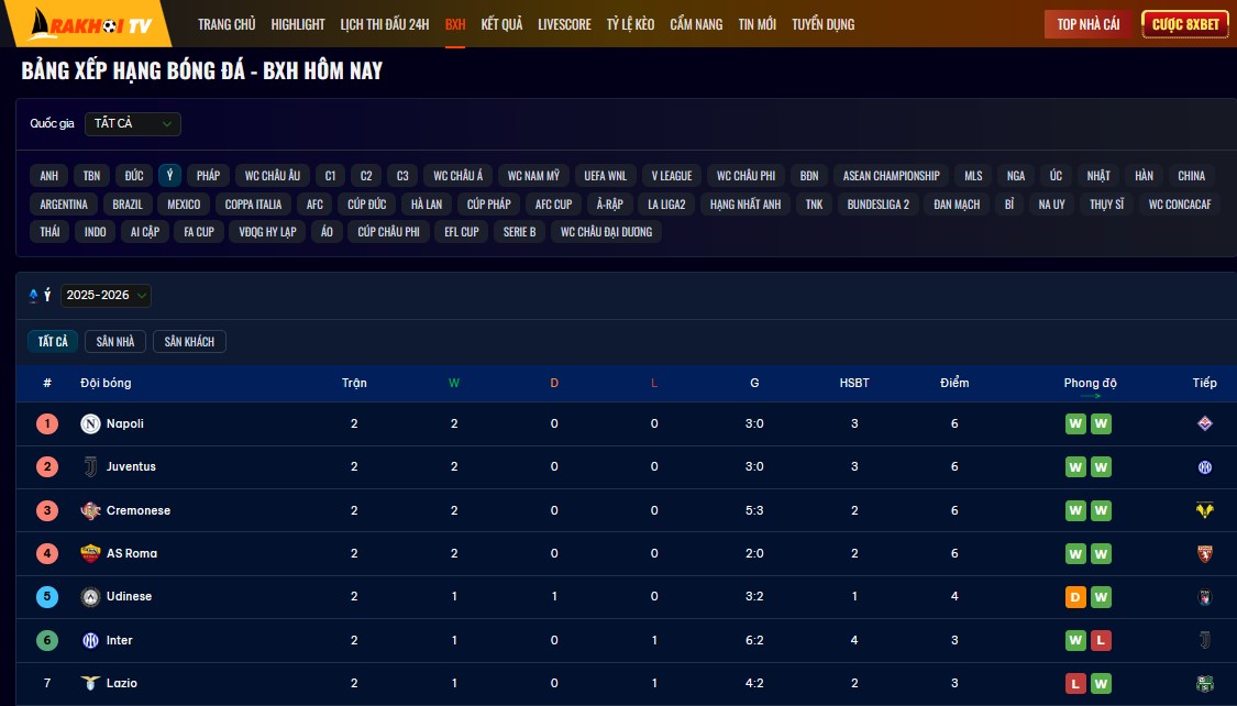 Một điểm cộng cực lớn của RakhoiTV là tốc độ cập nhật. Chỉ vài phút sau khi trận đấu kết thúc, bảng xếp hạng bóng đá Ý đã được cập nhật đầy đủ. Mình chỉ cần mở điện thoại là biết ngay Napoli dẫn đầu ra sao, khoảng cách với Inter Milan là bao nhiêu, hay Juventus có bất ngờ bị tụt hạng không.